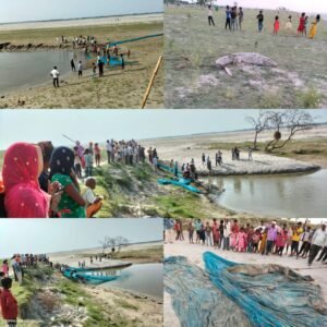 मांझा गुनौली गांव के किनारे मिला एक विशालकाय मगरमच्छ