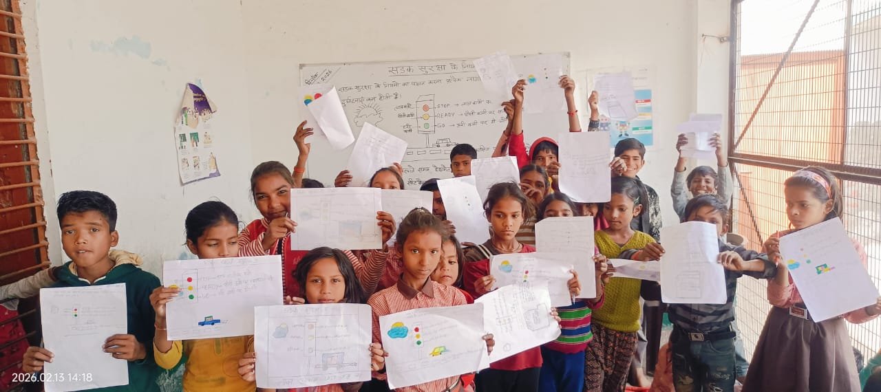 पोस्टर प्रतियोगिता के माध्यम से छात्रों ने दिया सड़क सुरक्षा जागरूकता का संदेश ।