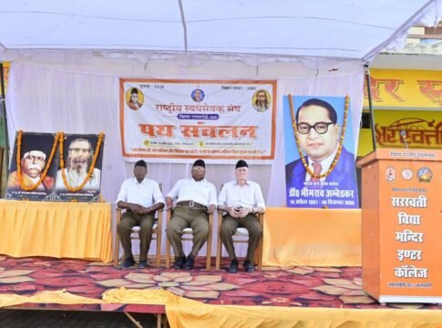 अंबेडकर जयंती पूर्व निकला संघ का पथ संचलन, अनुशासन और समरसता का दिया संदेश